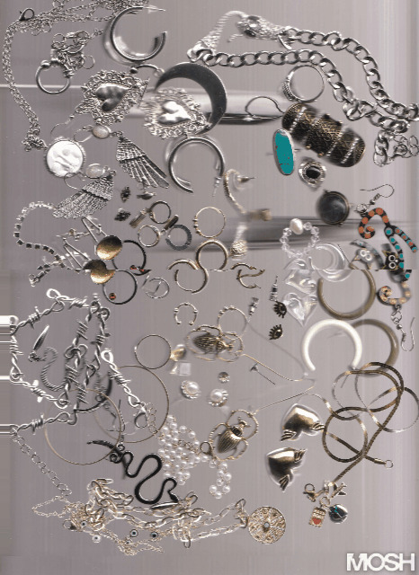 El look se construye por archivo y por huella. Aunque el cuerpo no está presente, su rastro persiste en aquello que lo vistió, lo embelleció y lo encubrió. Los accesorios aparecen como vestigios de un ritual íntimo, suspendidos en un espacio sin volumen.