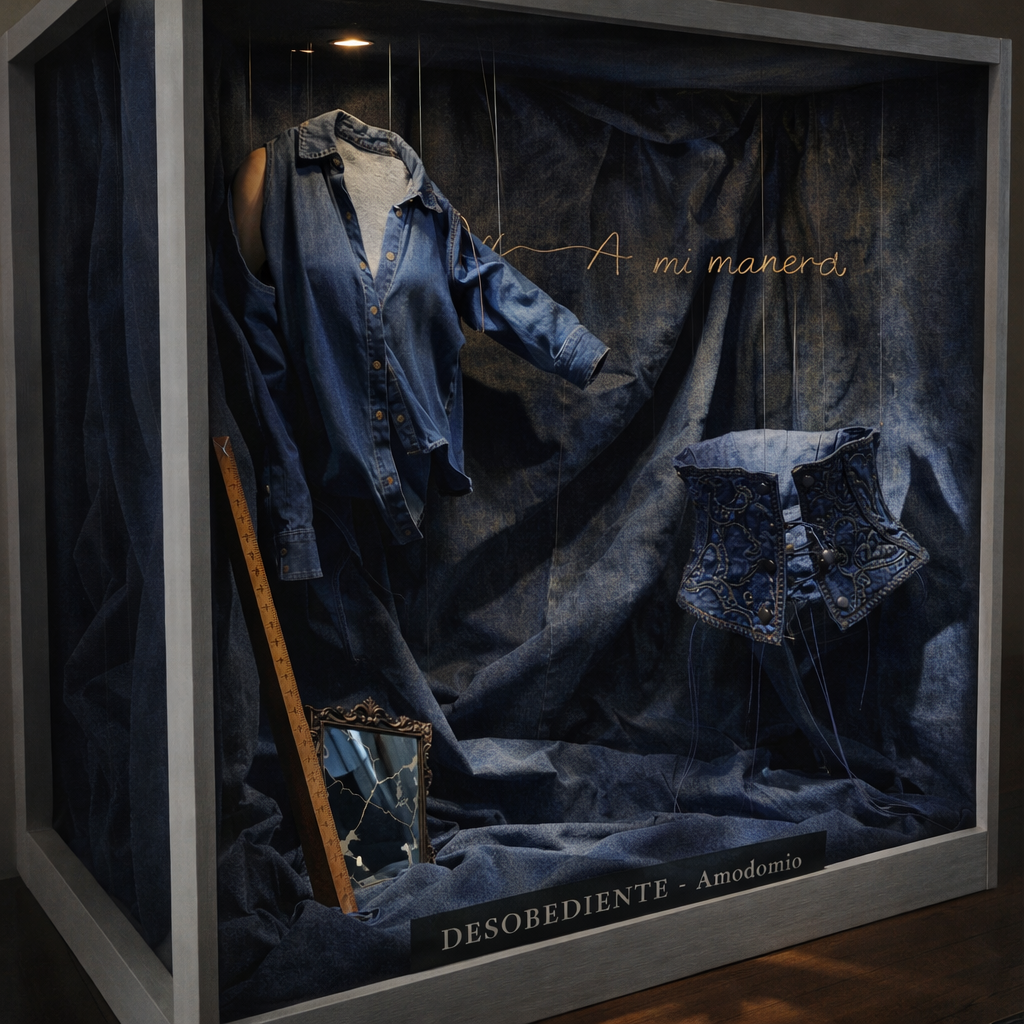 La narrativa parte de una mujer que decide desobedecer la forma en la que se le ha pedido habitar su cuerpo. No se quita la ropa: se la reapropia. No se libera del denim: lo convierte en lenguaje.